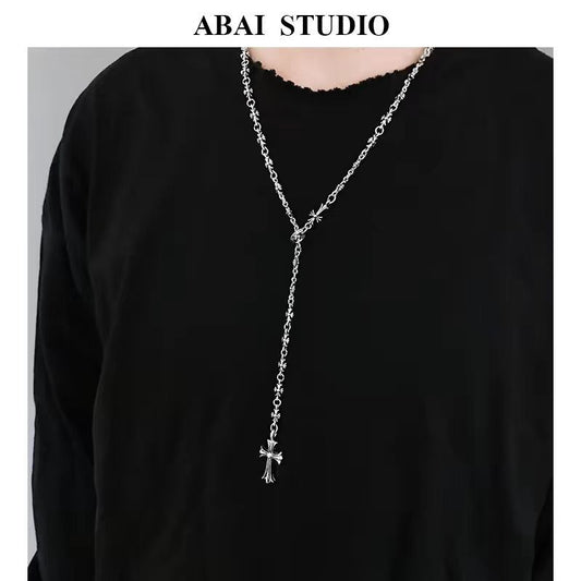 Cross necklace hexagonal star sword boat anchor pendant paired with letter flame pearl chain